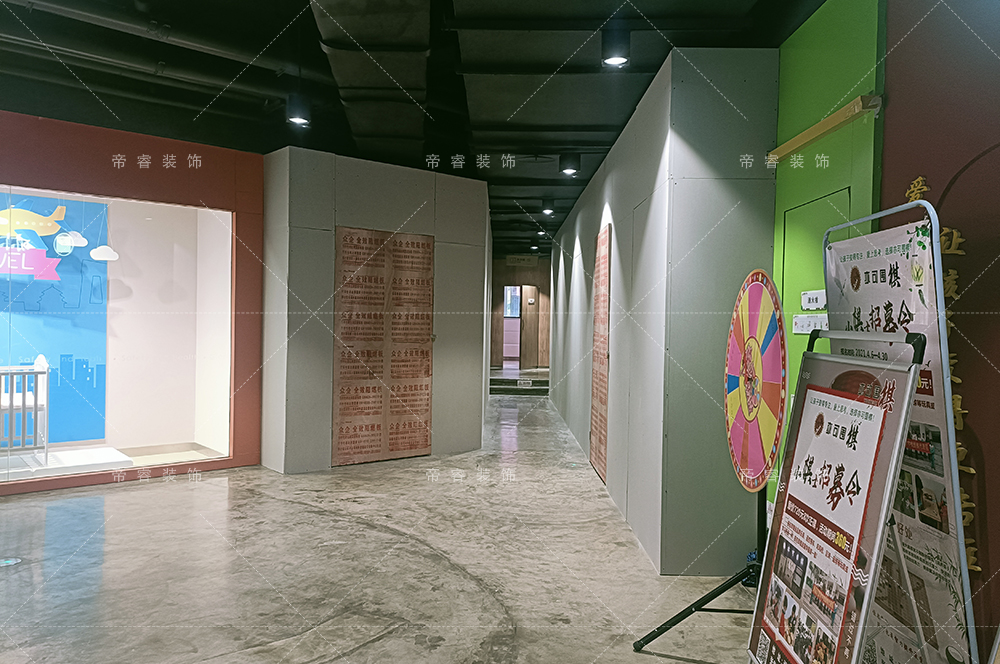 成都帝睿裝飾溫馨提示:假如裝修工程是位于商場以內,通常要把外側打圍高度延伸至頂,并做密封處理,目的是為了規避揚塵和阻擋部分施工噪音;裝修工程如果位于人口密集臨街地段,只需適當控制打圍高度,一般建議高度至少2米以上。